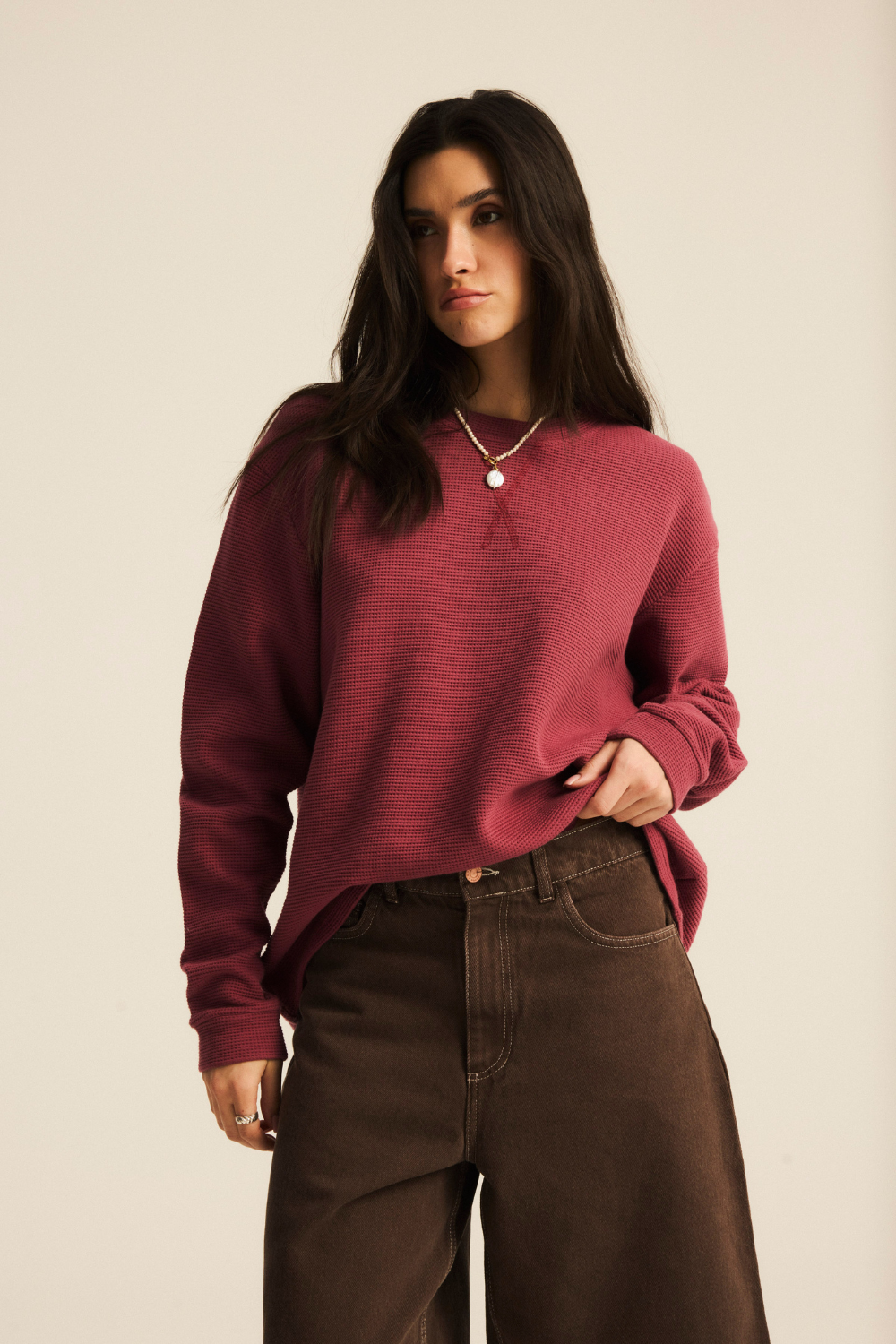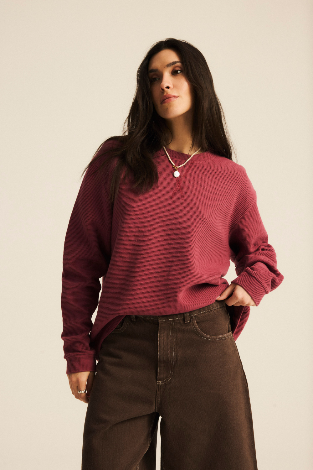Longsleeve Morgan Waffle Softened Dark Rose
