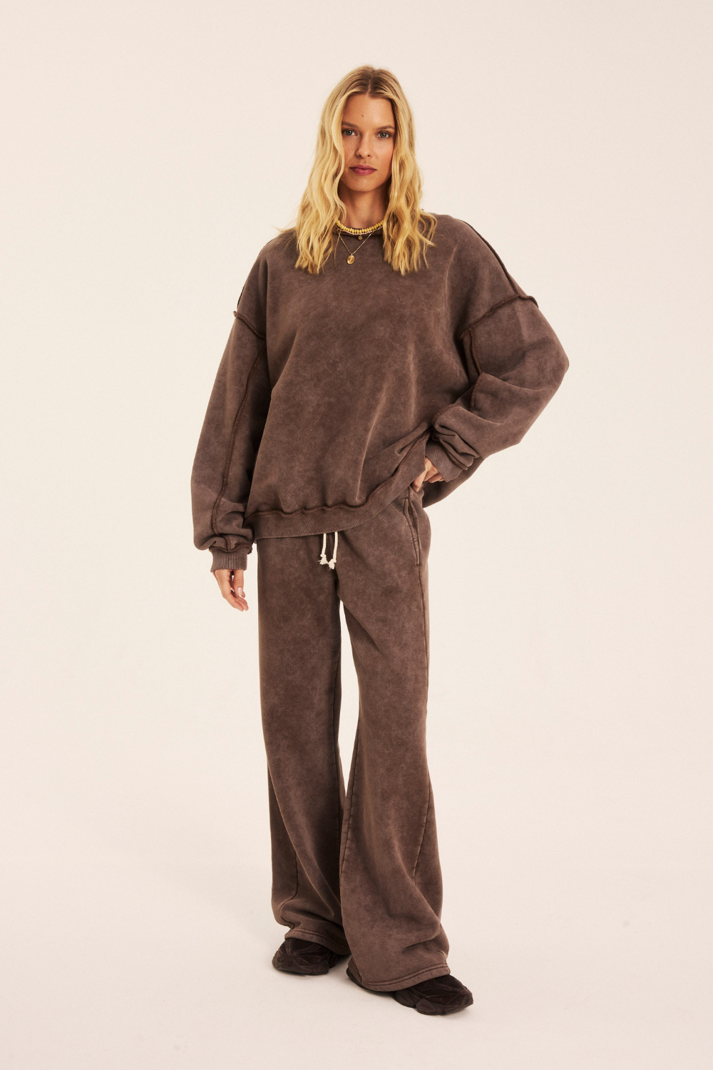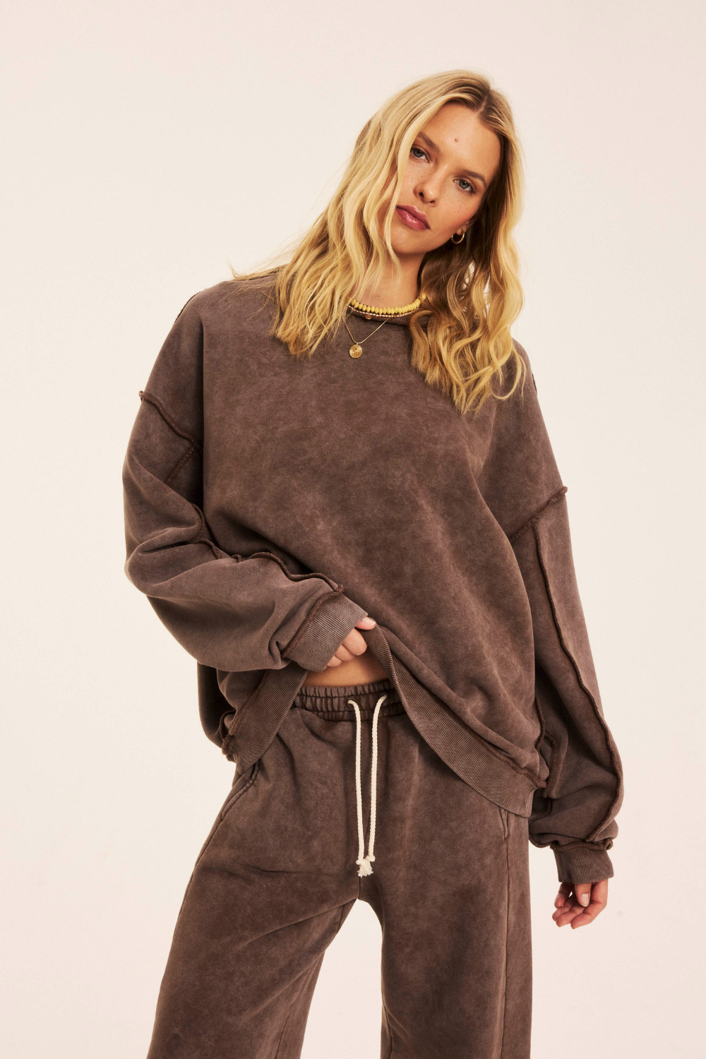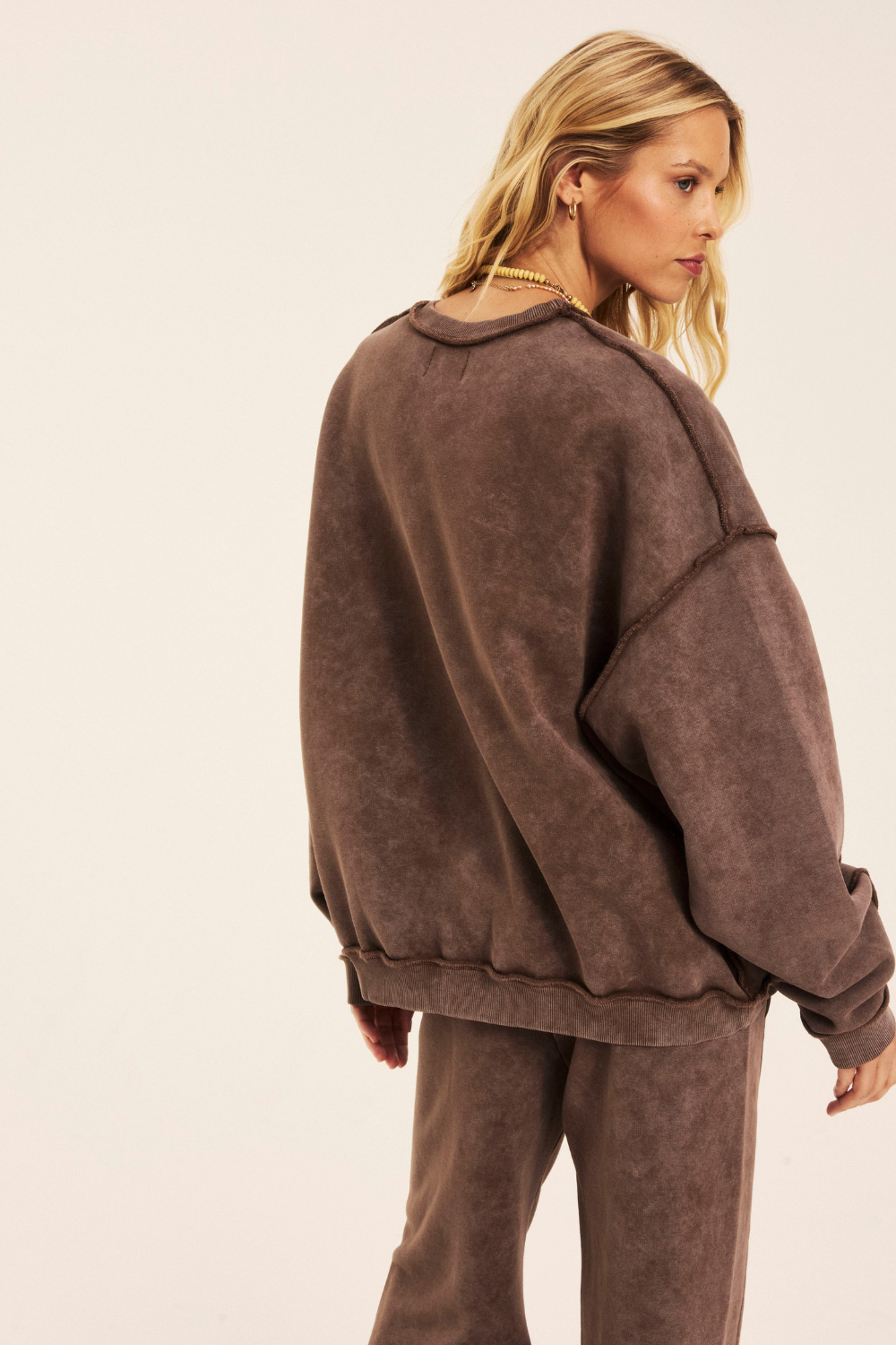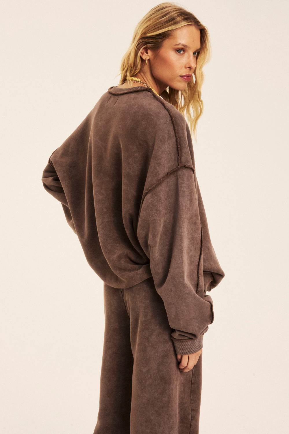 Jumbo Rough to najnowsza wersja Waszej absolutnie ulubionej bluzy w Bohemi Soul. Jak zawsze jest to mocno oversize’owa, luźna propozycja, charakteryzująca się dekoltem crewneck oraz wydłużonymi rękawami z mocno obniżoną linią ramion. Wersja Rough ozdobiona została natomiast grubymi szwami wykonanymi „na lewą stronę”, które dodają bluzie mocno streetwear’owego vibe’u. Jumbo w naszym nowym brązie Choc Delight wykonana została z drapanej bawełnianej dzianiny dresowej, której specjalne opranie w wysokiej temperaturze nadało niepowtarzalnego, podniszczonego stylu oraz niezwykłej miękkości. Naszą nową Jumbo noś w komplecie ze spodniami Vermont z tej samej dzianiny lub połącz ze swoimi ulubionymi jeansami.
